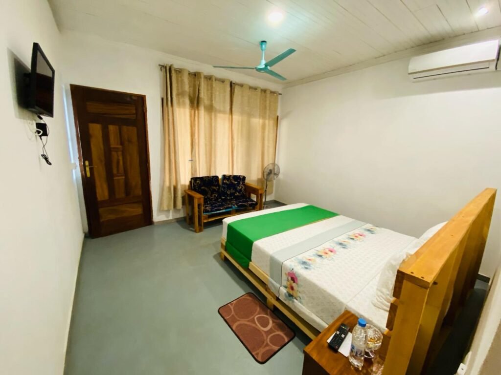 Dispomos de 5 quartos duplos/twins com wc privativo, wi-fi, ar condicionado e ventilador com todas as condições para proporcionar os hóspedes o melhor conforto. As reservas incluem pequeno almoço no nosso Restaurante com vista vista incrível para nossa esplanada e floresta tropical da ilha de São Tomé