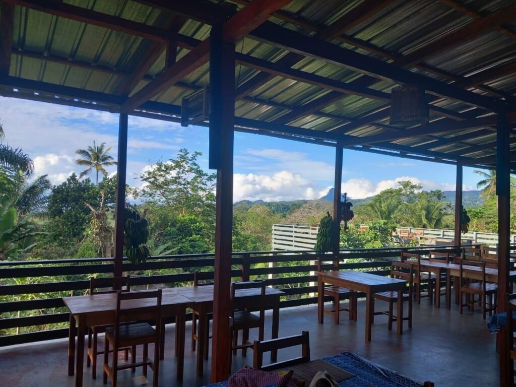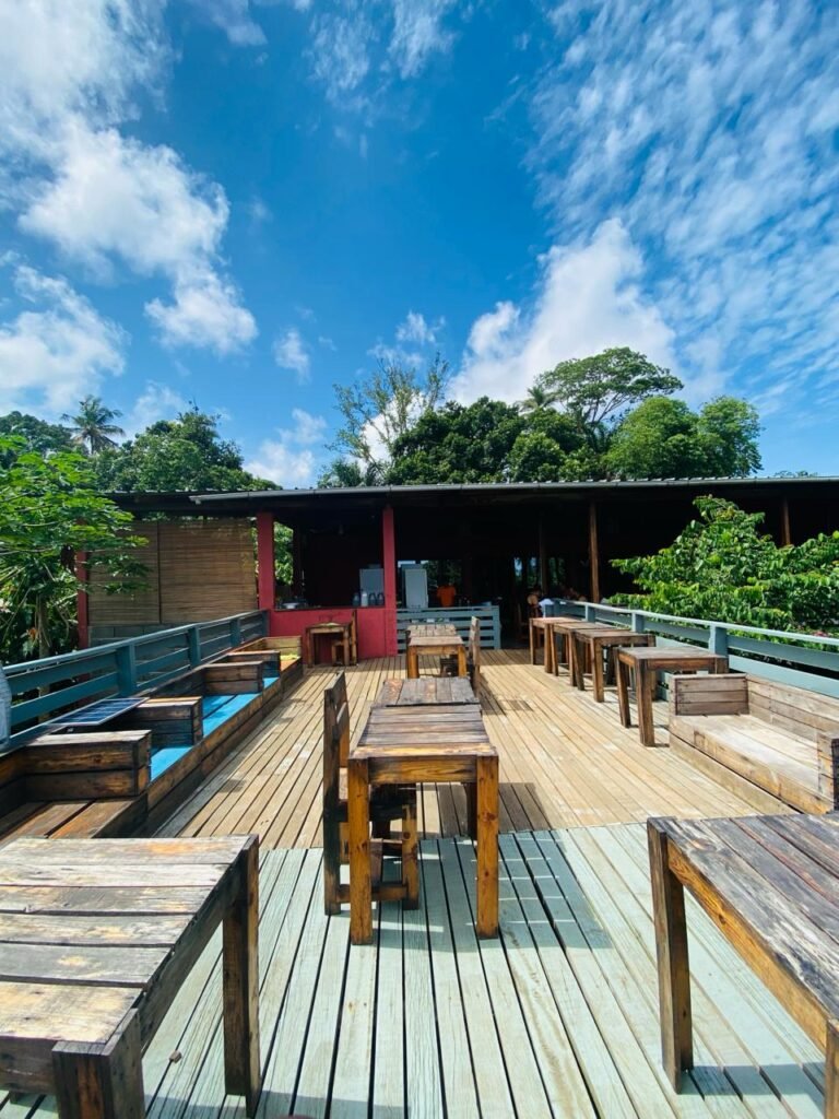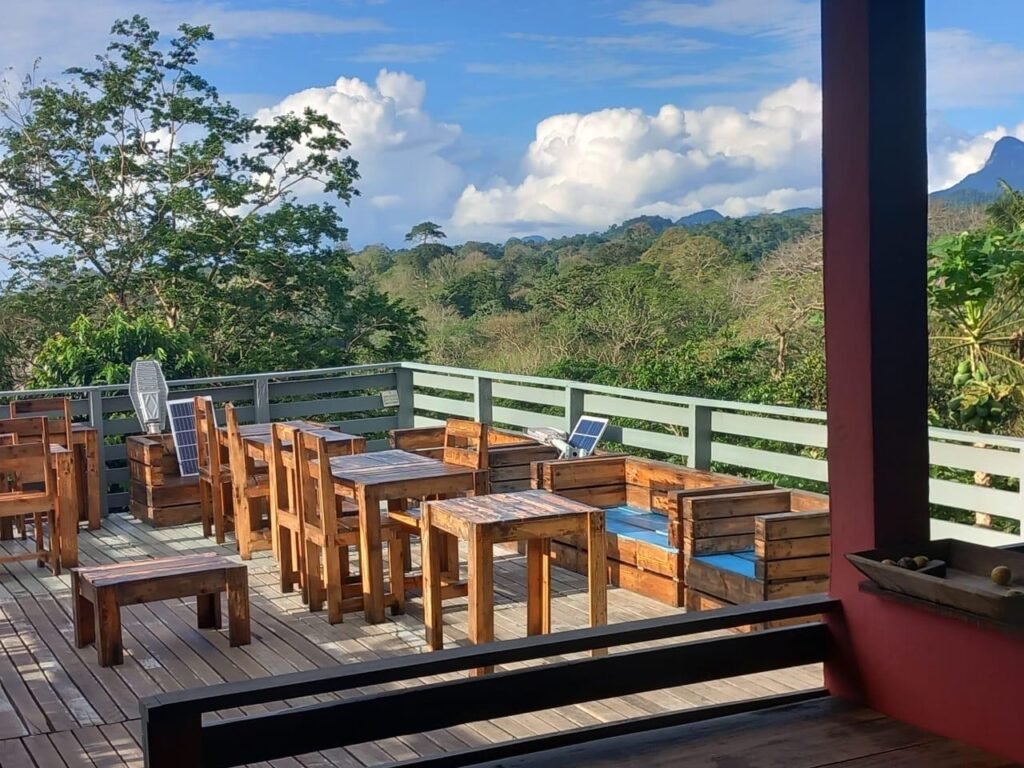 Nosso belissimo restaurante com uma vista magnifica para picos e a floresta da ilha de São Tomé oferece pratos deliciosos de pequeno almoço, almoço e jantar.